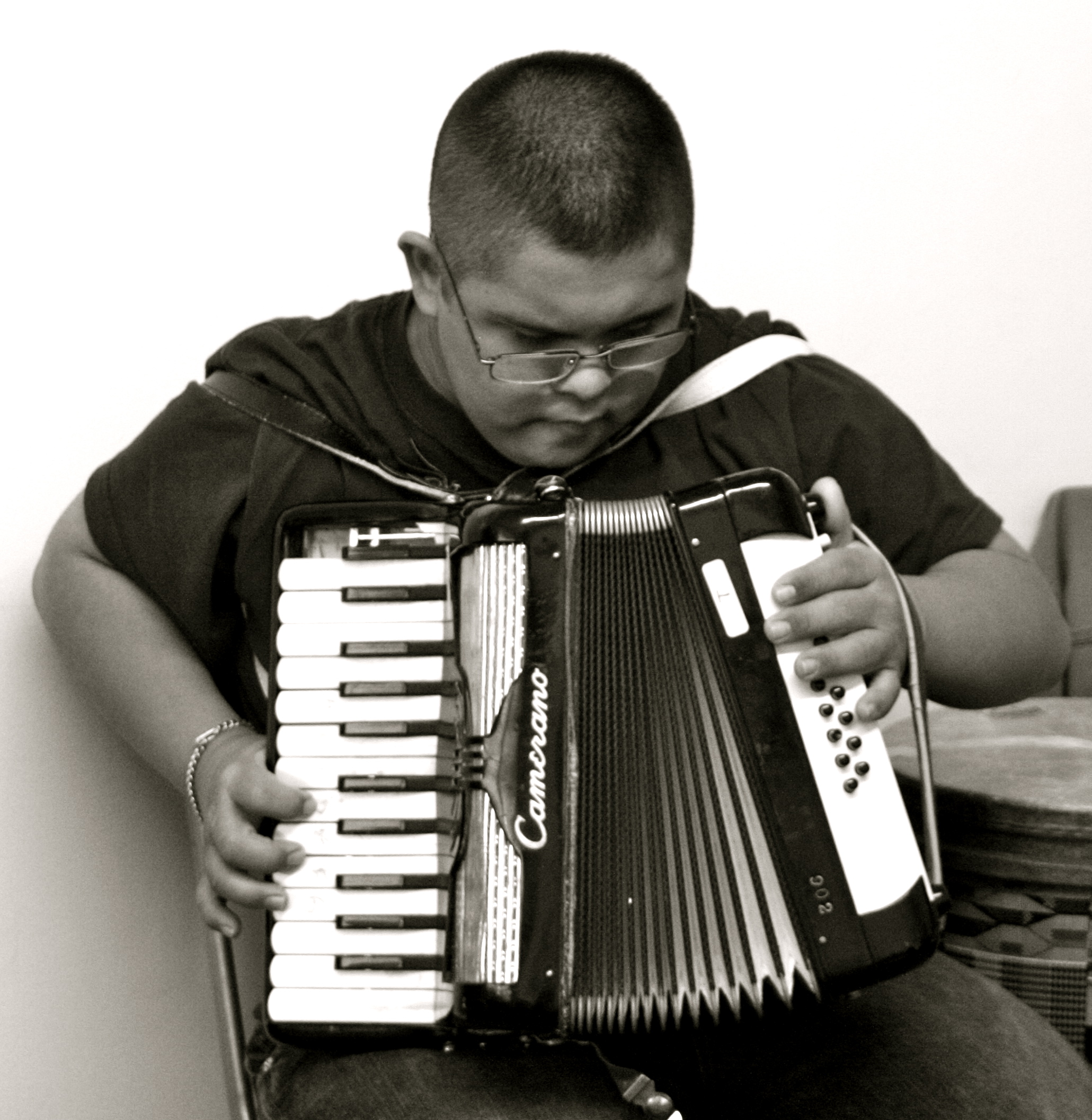 Carlos fue diagnosticado cuando tenía dos años de edad después que Regina se diera cuenta de que el no había pronunciado una sola palabra y tenía dificultades para socializar. “Carlos es el más tímido. Todavía tiene problemas para hablar con la gente. Pero la terapia de música le ha ayudado a socializarse más,” dice Regina.