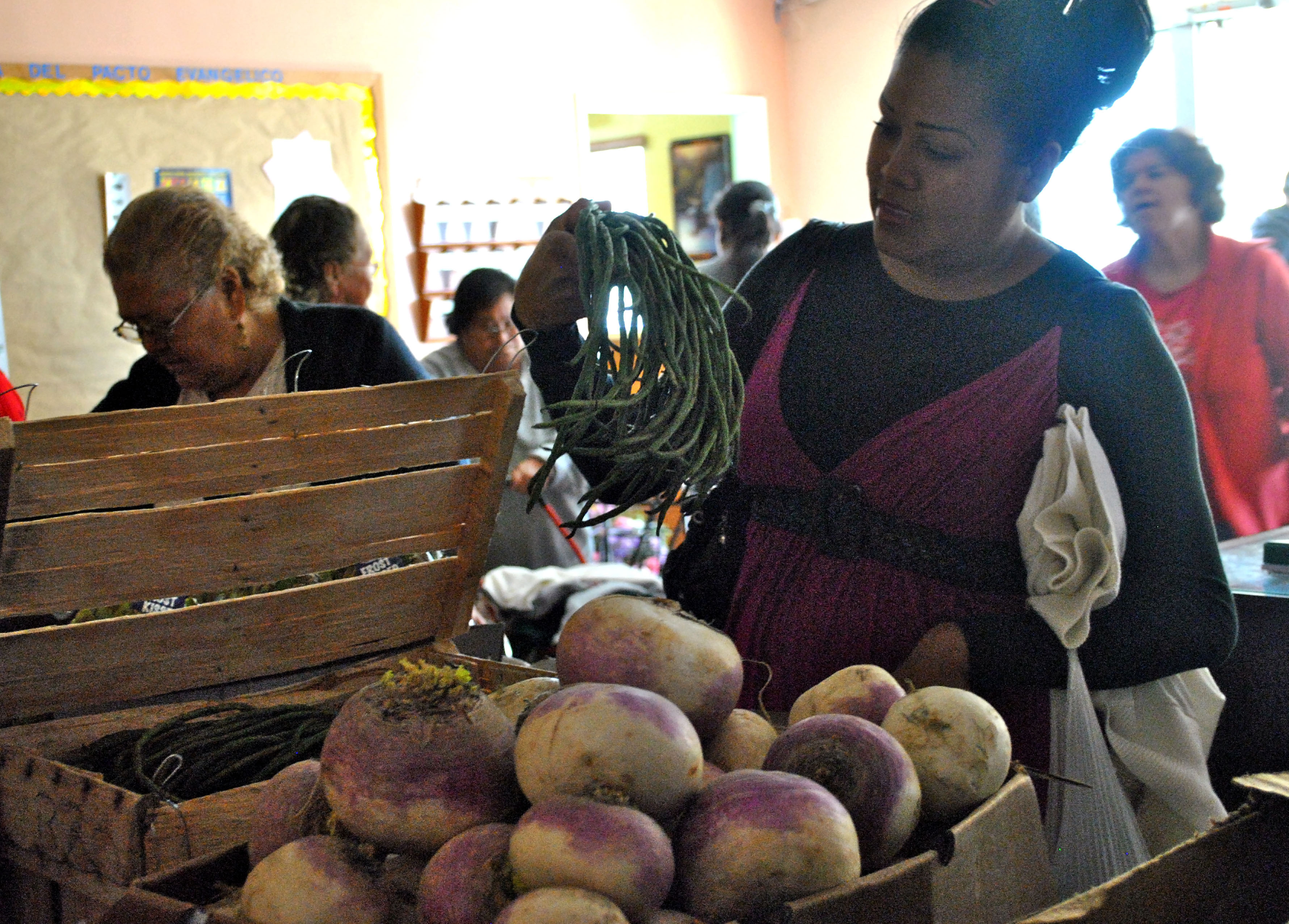 María Ester Mejía ayuda en la despensa y Araceli Saravia asiste periódicamente. En 2002, cuando la despensa de alimentos —llamada El Proyecto Nehemias— se inició en la primera Iglesia del Pacto Evangélico, la sede del programa, alrededor de 30 familias venían cada dos semanas para recibir alimentos. No era comida “gourmet” (calabazas, chiles, tomates, y más verduras, arroz, leche, frijoles secos), pero la gente apreciaba la donación y la iglesia podría administrar la distribución con un puñado de voluntarios.