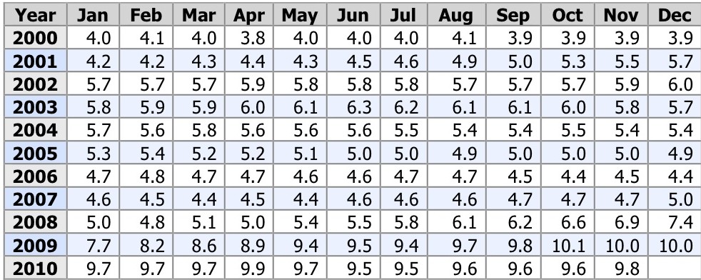 United States Department of Labor - Labor Force Statistics from the Current Population Survey - Unemployment Rate - 16 years and over 2000-2010