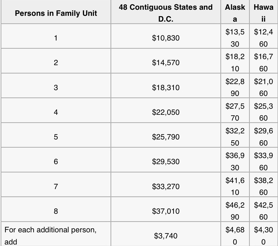 But what exactly is living in poverty? According to the poverty guidelines from the Department of Health and Human Services for a family of two the poverty threshold is $14,570, for a family of 3 its $18,310 and more than that is as shown on the graph.