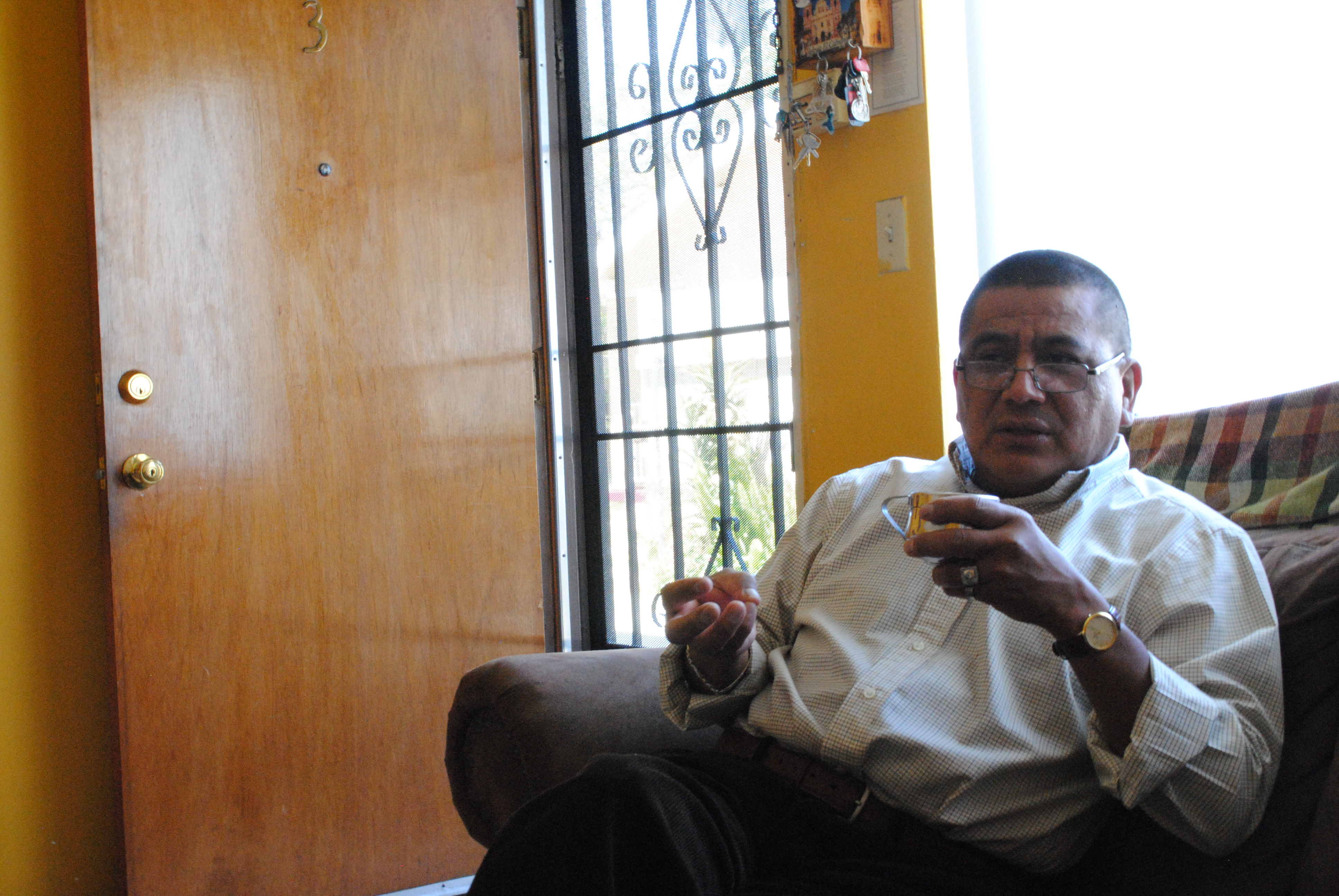 Adonis Ortiz tomando un café en domingo por la tarde antes de salir con su familia. El Nuevo Sol/Jorge Neri