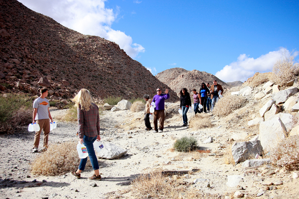 Border Angels placing water at the desert in the Imperial Valley. (Photo by Misael Virgen/ El Nuevo Sol)