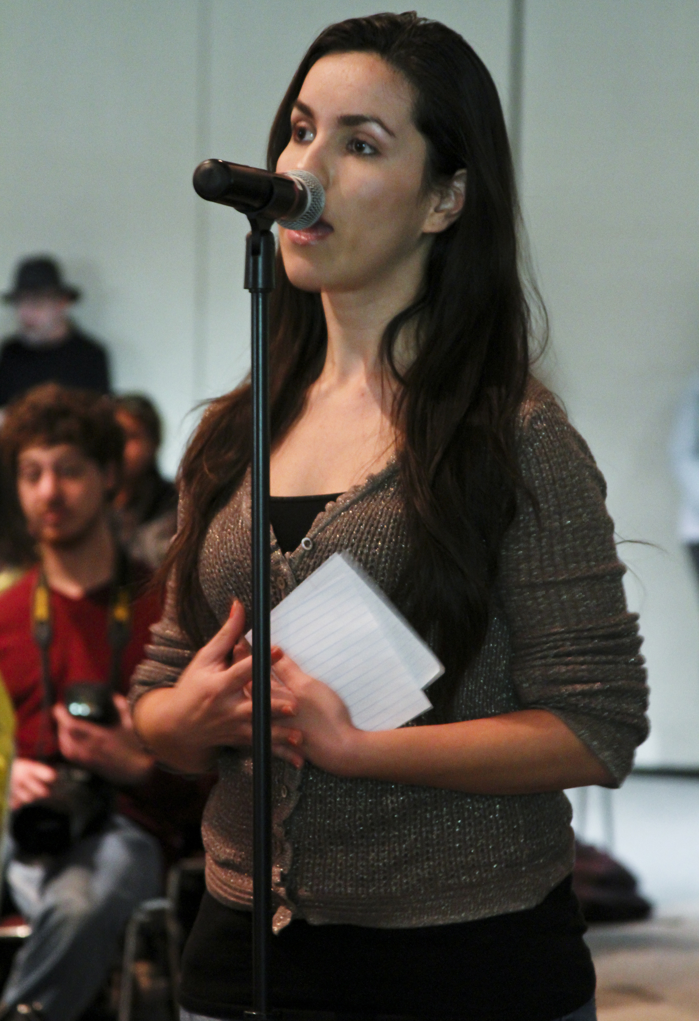 Maribel Serrano, an undocumented CSUN student, shares her story with Vargas and the audience. Karla Henry/EL NUEVO SOL