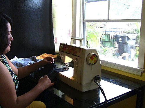 Delia Mauz realiza trabajos de costura en su casa para suplementar sus ingresos. (Foto: Sandy Isidoro/ El Nuevo Sol).