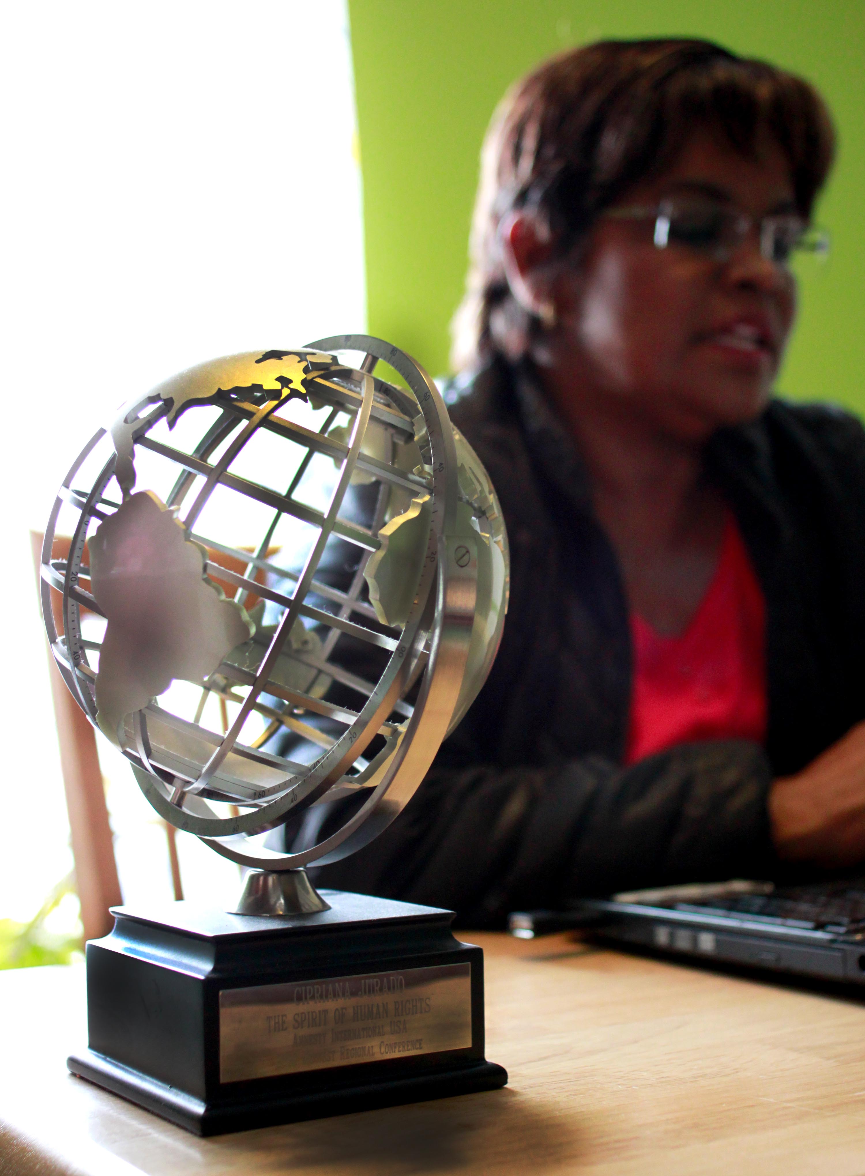 Marisela Ortiz is a human rights activist from Ciudad Juárez who had to feel after receiving death threats because of her work against the femicides and other human rights abuses in the city. Both her son-in-law was and brother were killed in retaliation to her activism, she said. Luis Rivas / El Nuevo Sol.