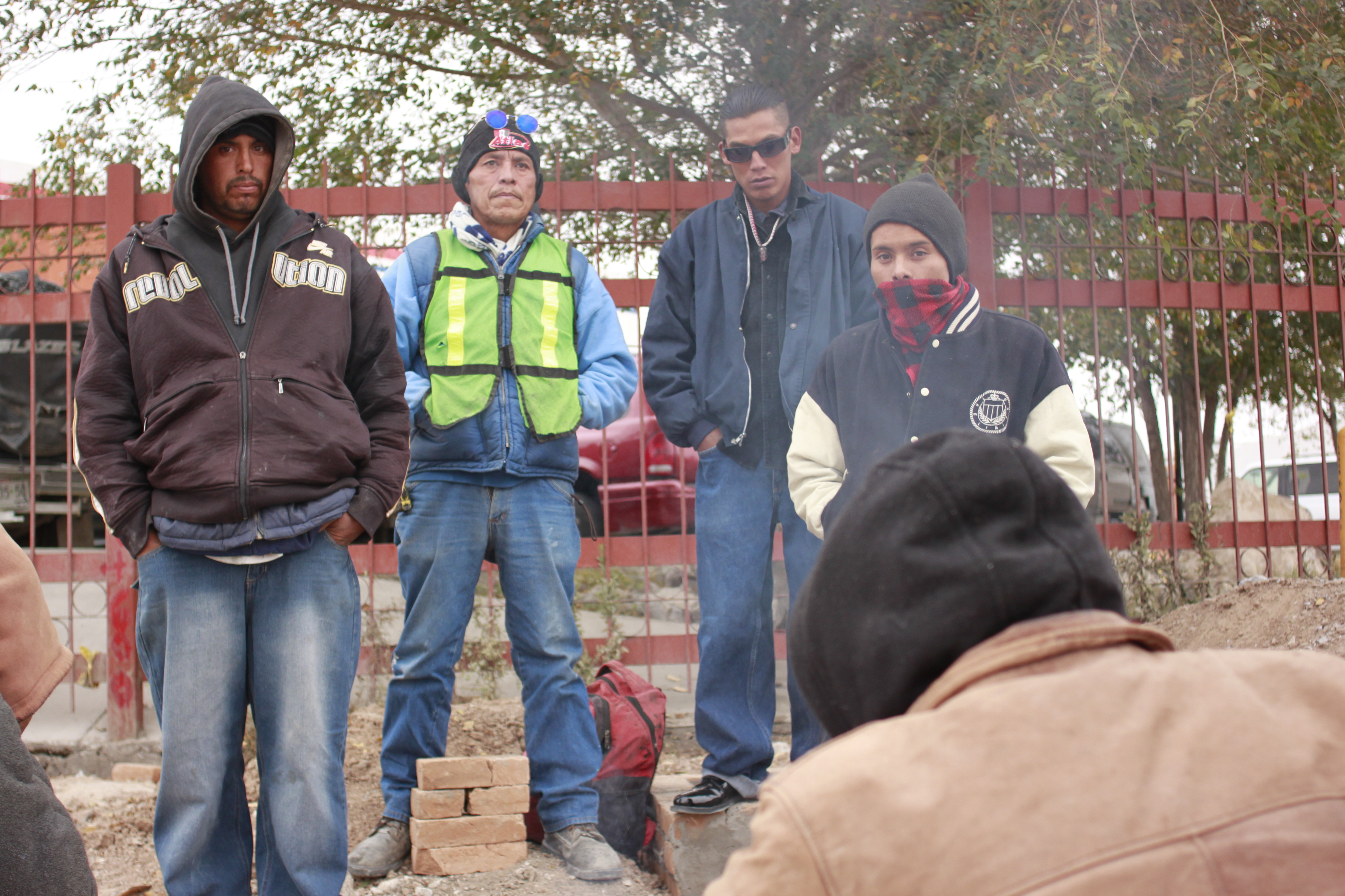 TE Connectivity is one of more than 300 maquiladoras in Ciudad Juárez. On Nov. 22, 2013, several construction workers waited in front of the maquiladora for their paychecks. Luis Rivas / El Nuevo Sol.