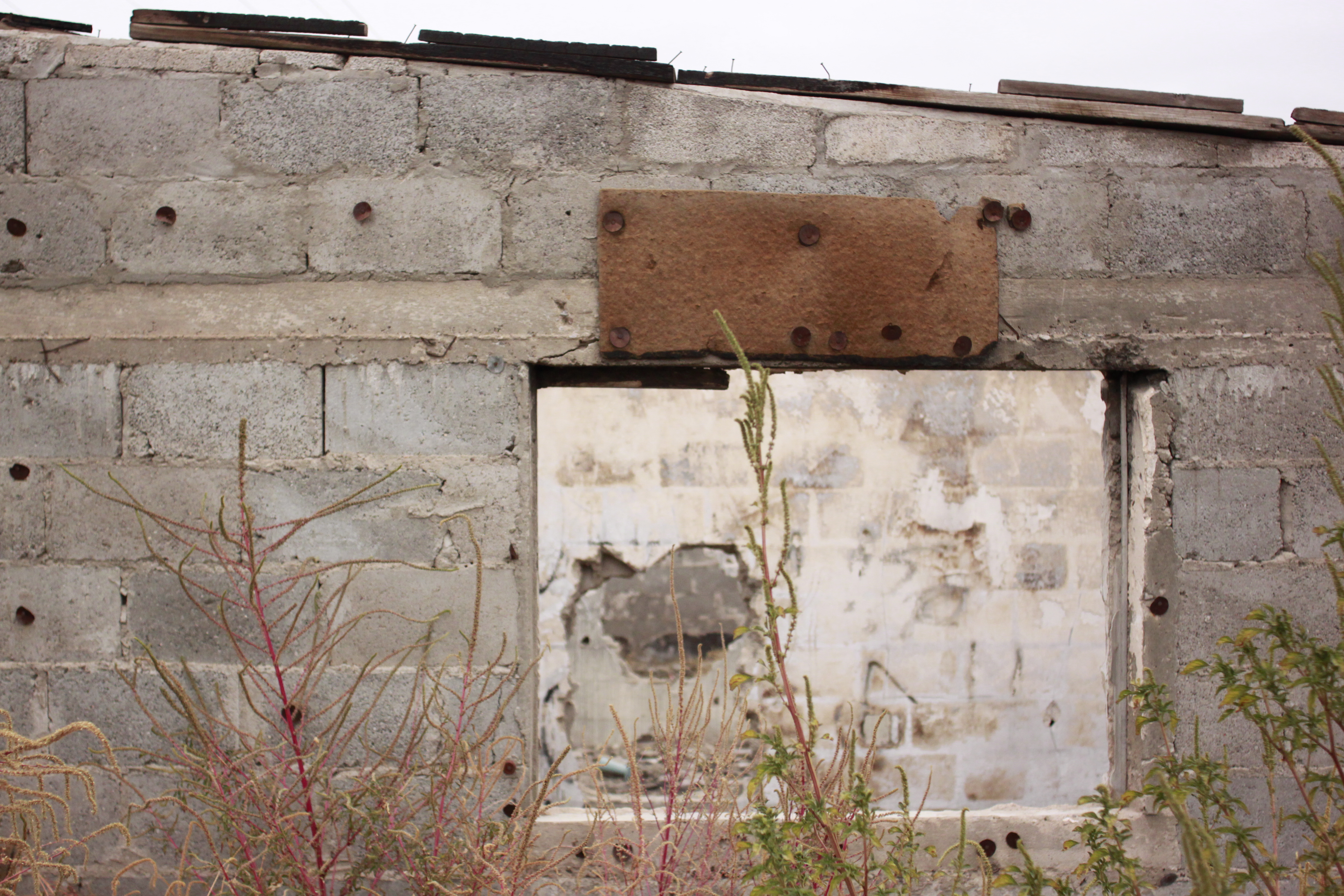 We take photos and video of the maquiladoras, the flat fields of dying cotton and abandoned and burned houses, construction workers on break, the abject poverty of the colonias, the neighborhoods—where houses, missing doors, walls and parts of the roof look abandoned but are inhabited somehow.