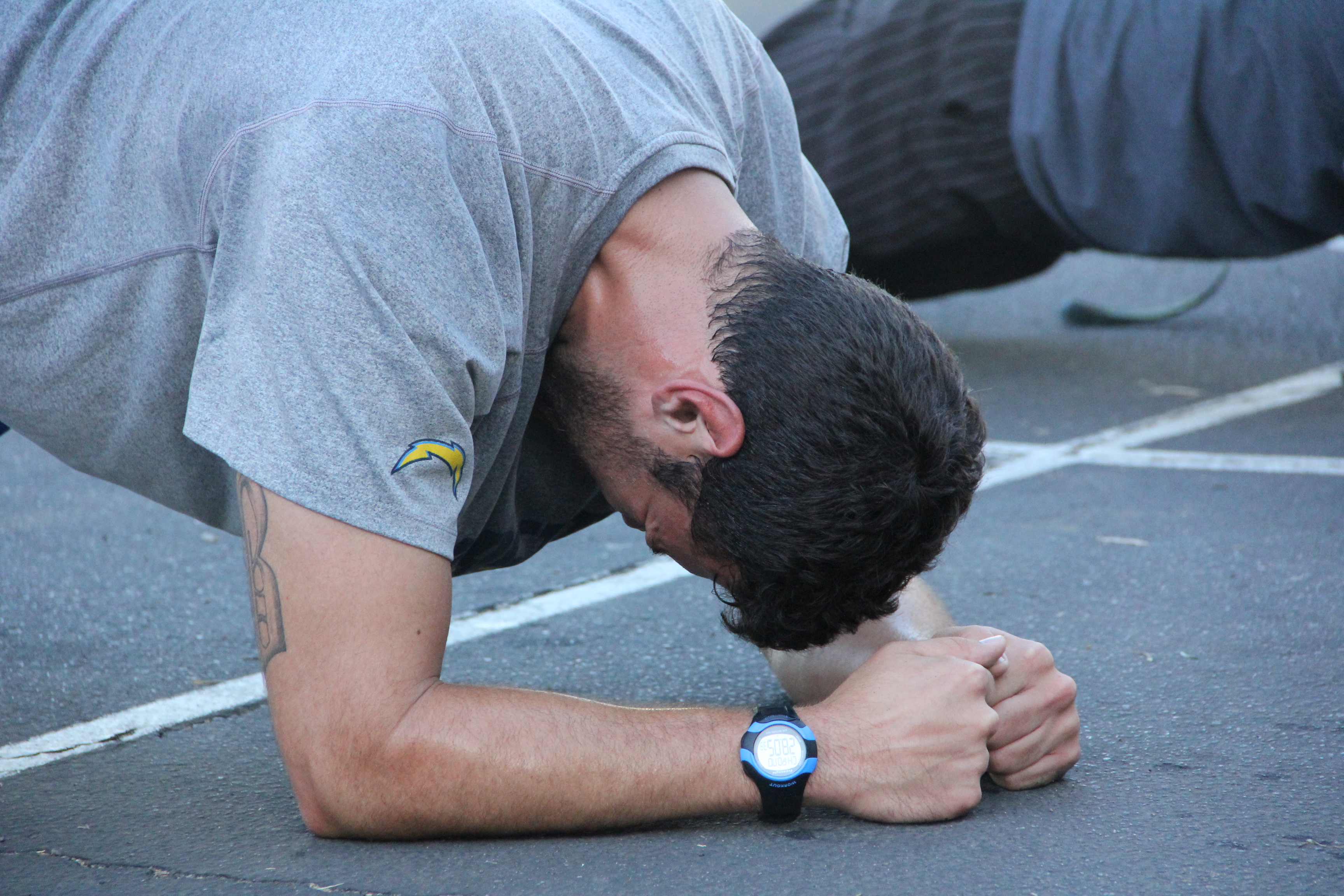 - Friday warrior and student trainer, Chris is holding a plank position at El Cariso Park. Victoria López / El Nuevo Sol