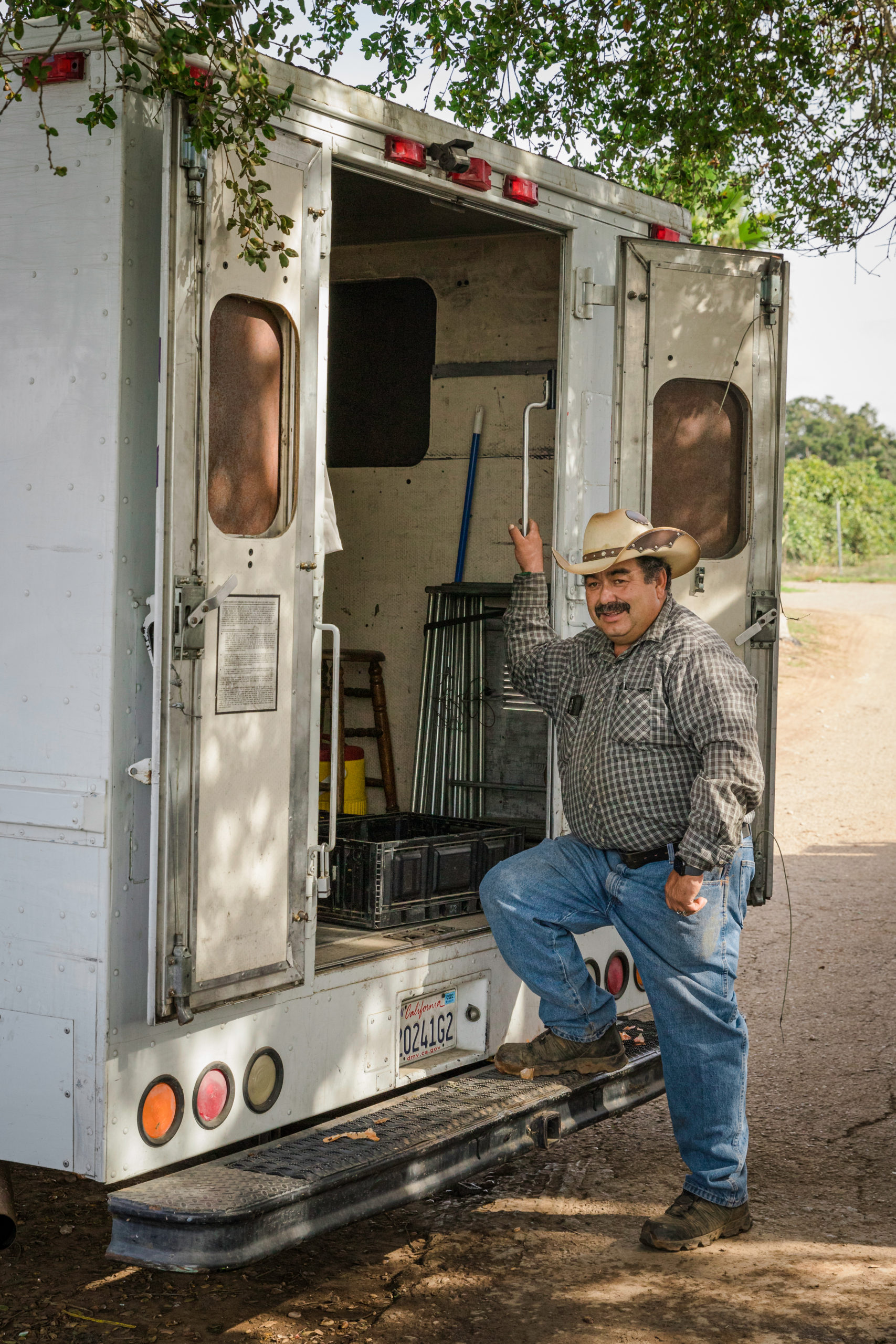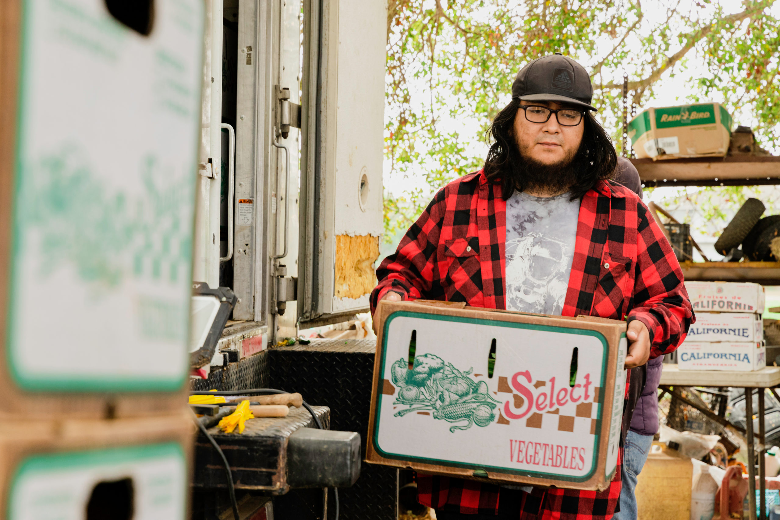 - José Alcántar waits for his farm workers to load up the truck to head to the Ojai Farmers Market at his family farm in Carpinteria, Calif., on Wednesday, Nov. 17, 2021. Alcántar said they used to sell their crops to local grocers in bulk, but because they haven’t been growing their usual yearly amount, they were forced to travel to multiple farmers markets to sell their products.