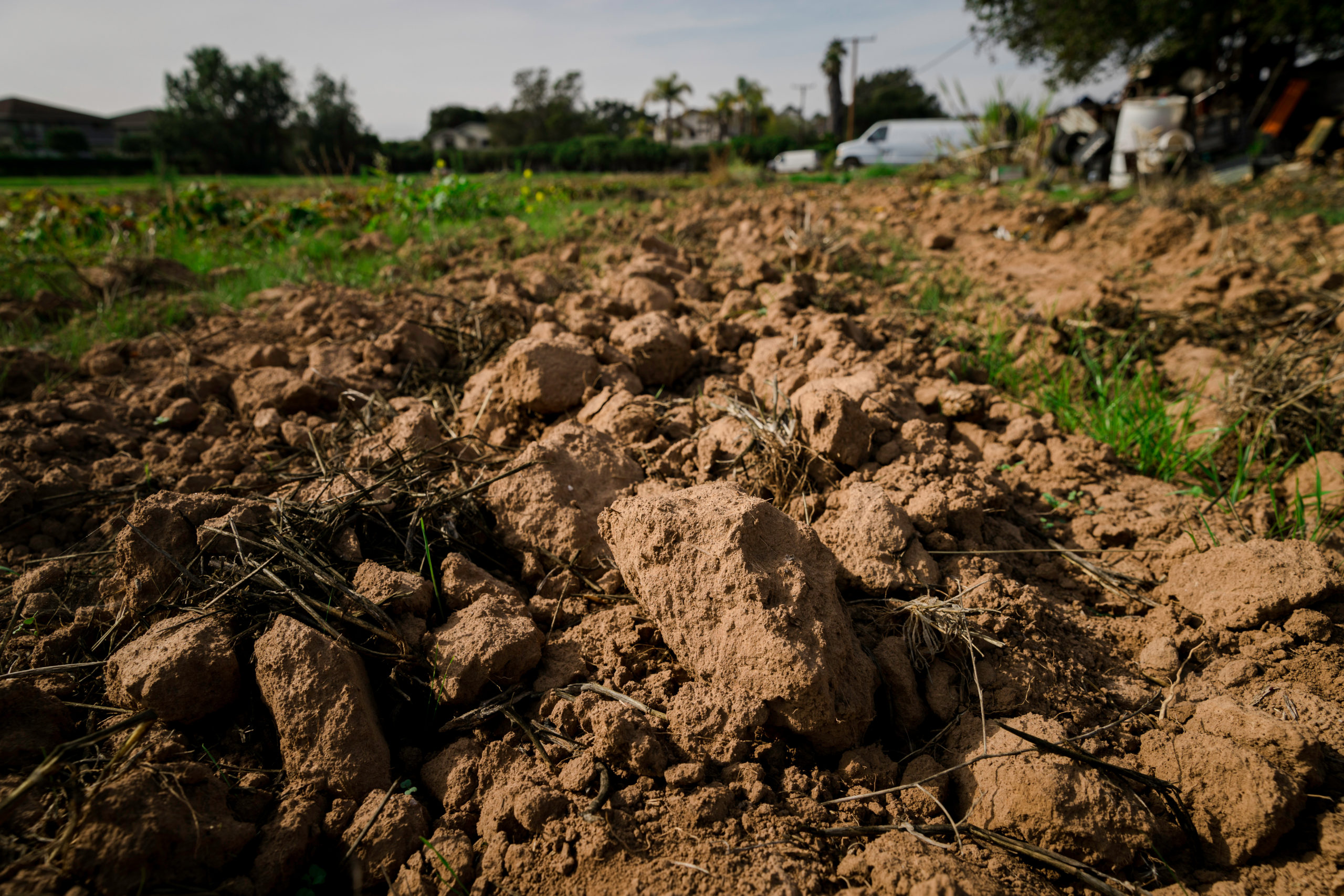 - A dry area where Alcántar would normally plant lettuce and cabbage at his family farm in Carpinteria, Calif., on Wednesday, Nov. 17, 2021. With this large patch of soil being too dry, Alcántar was forced to use this area as an organic dump to cultivate compost. “When there is no rain, it’s hard to grow anything,” Alcántar said. “Paying for water is too much so we made dry areas on purpose to save money.”