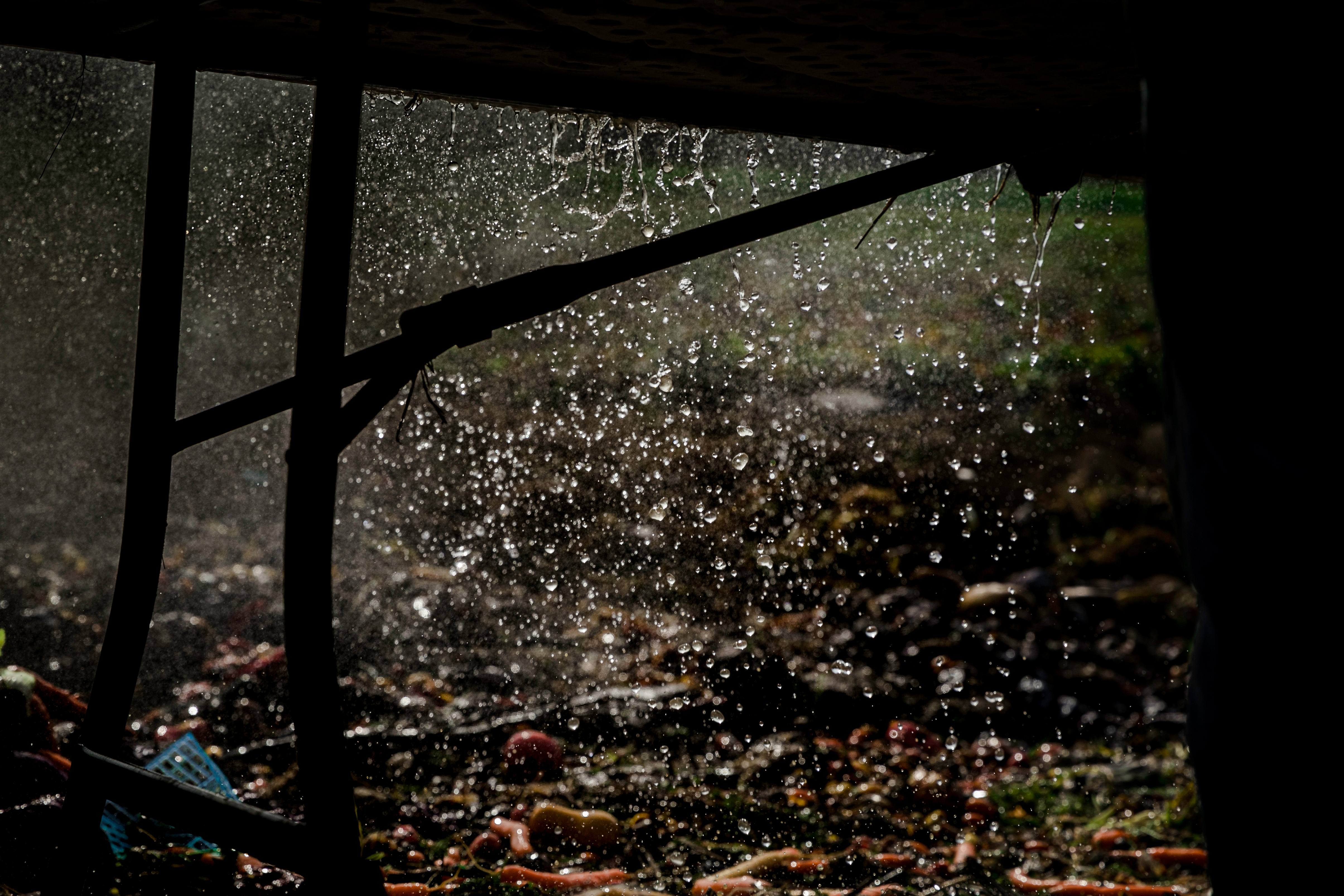 - Water drips off the edge of a table after washing some vegetables to keep them damp for the farmers market. Alcantar said he has tried to limit using the hose, but still has to use it when they need to wash their produce for farmers markets.