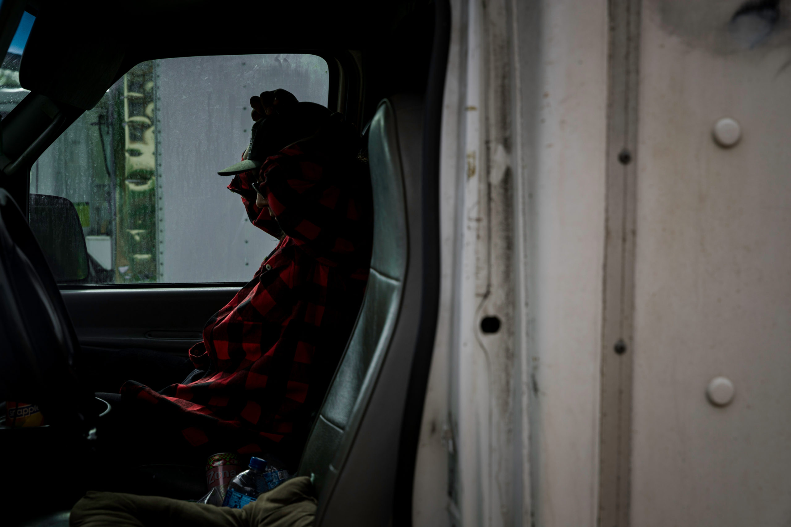 - José Alcántar Jr., the son of José Alcántar, waits for his mother in the truck to head to the Ojai Farmers Market at his family farm in Carpinteria, Calif., on Wednesday, Nov. 17, 2021. Alcántar said they used to sell their crops to local grocers in bulk, but because they haven’t been growing their usual yearly amount, they were forced to travel to multiple farmers markets to sell their products.