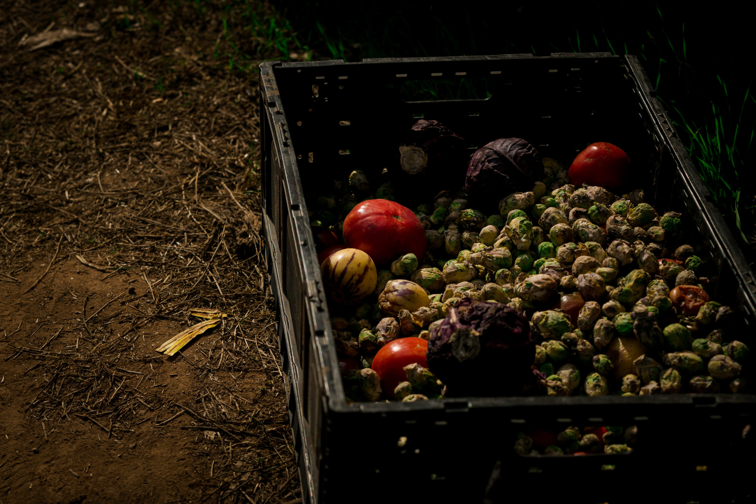 - A crate filled with fruits and vegetables that were not good enough to sell at his family farm in Carpinteria, Calif., on Wednesday, Nov. 17, 2021. Alcántar said the dry conditions at his farm has forced him to throw away produce in larger amounts throughout the past year. “I would just turn it into compost and just leave it,” Alcántar said. “But I can’t do that for everything.”