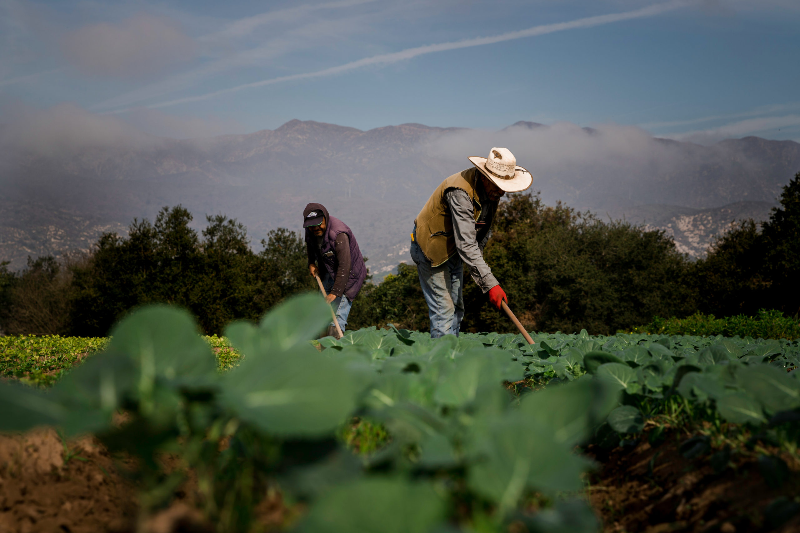 - Andrés, left, and Leonel Alcántar, right, sift through the soil and pick the weeds growing next to the young broccoli crops at Alcantar Farms in Carpinteria, Calif., on Wednesday, Nov. 17, 2021. Andrés and Leonel are both family members of José Alcántar and have been working for him for more than 10 years.